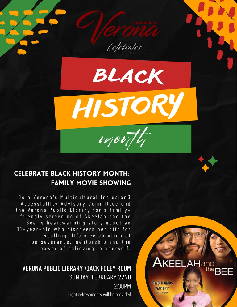 Join Verona’s Multicultural Inclusion& Accessibility Advisory Committee and the Verona Public Library for a family-friendly screening of Akeelah and the Bee, a heartwarming story about an 11-year-old who discovers her gift for spelling. It’s a celebration of perseverance, mentorship and the power of believing in yourself.